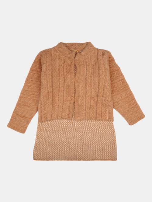 girls long sleeved self design regular sweater
