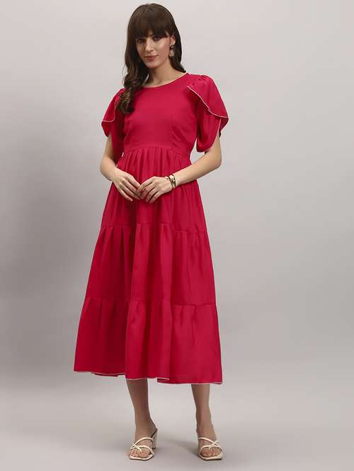 women solid tulip sleeve tiered dress