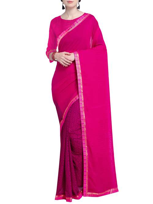 Saree Swarg Pink Faux Georgette Saree with Blouse