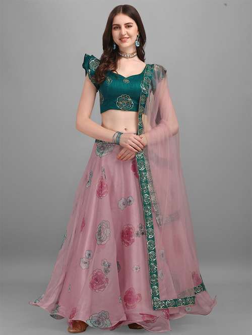 pink floral flared lehenga - 18437194 - Very Small Image - 1