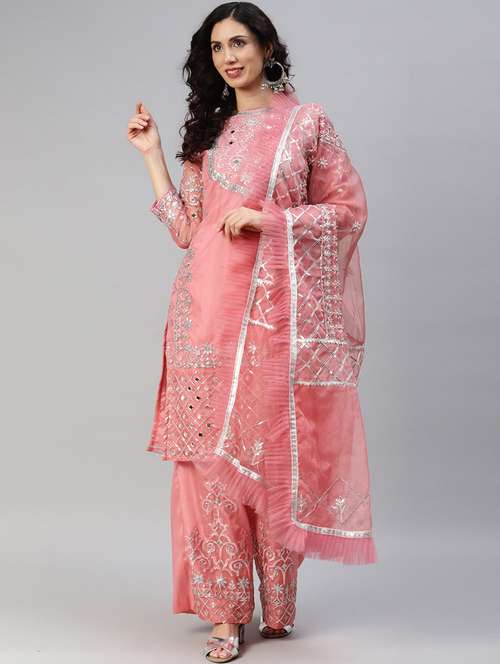 pink embroidered salwar suit