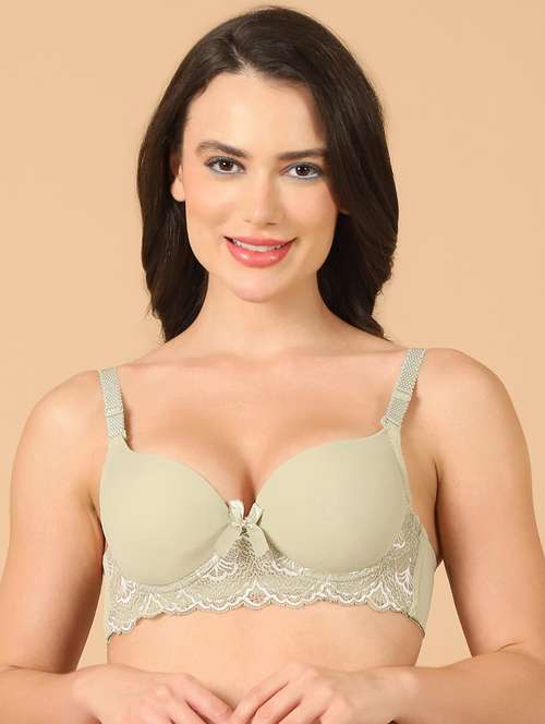PrettyCat dusty pink T-shirt bra features padded cups to ensure modesty and comfort. It is skillfully crafted from smooth polyamide fabric, offering a second-skin fit. The bra boasts exquisite lace detailing at the bottom, Underwired cups for a gentle lift. Offering full coverage to prevent any spillage from the top or sides, the bra also features seamless cups for a sleek appearance under fitted tops. For added versatility, it comes with detachable straps for various styling options, Cute bow at the centre for embellishment.