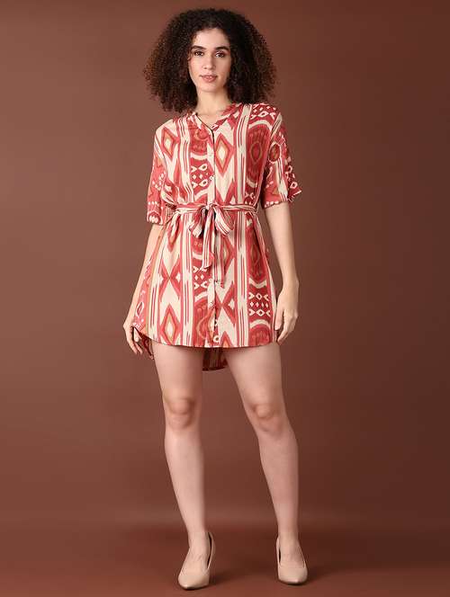 - Dress up in a soothing pattern and don this dress made of cotton material.