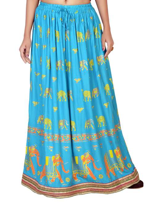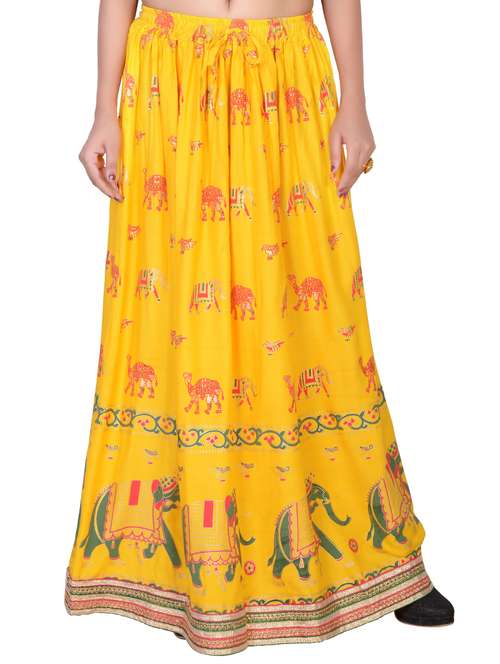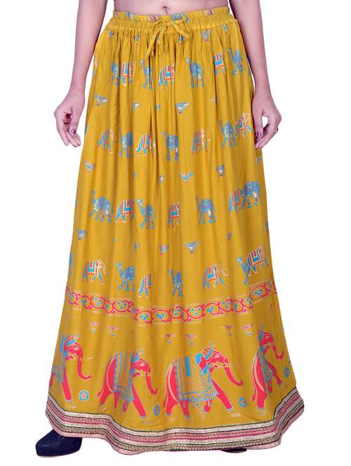 Jaipuri Fashionista Presents Designer Jaipuri Rajasthani Print Long women's Skirt, Size: Free Size (Upto 44inch - XXL) length: 40 inch, Waist Style: Regular, Closure Type: Elastic with Drawstring, Pattern: Long Skirt For Womens & Girls, Type: Best worn in Daily Wear, festivals, casually in Parties, Beach Wear And Loose Fit Skirt .Color Will Not Bleed, Fast Colours, No Shrinkage, Washing instruction: Machine wash, Wash in normal water, Do not brush & bleach. Complete Your Ethnic Ensemble with Multi-Colored Full Long Jaipuri Rajasthani Skirt from the house of Jaipuri Fashionista. Skirt is Made From Rayon Fabric, the Skirt are light in weight and soft against the skin.