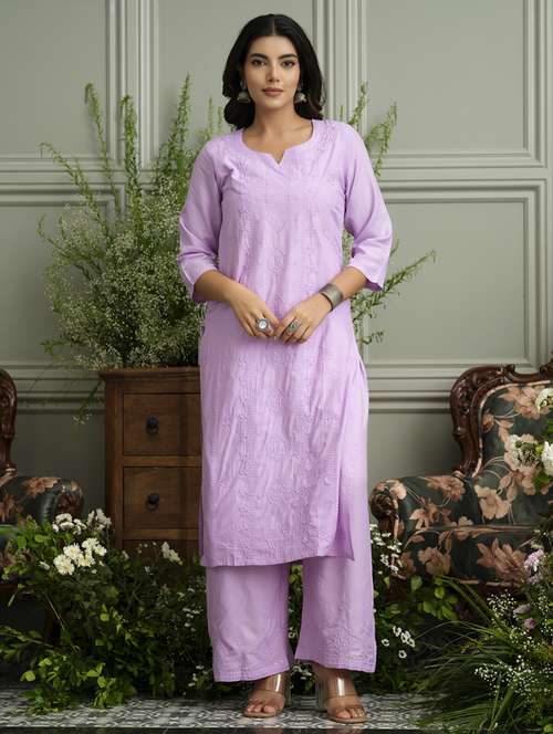 - Browse through the latest range of ethnic sets for women with tailored sleeve designs with embroidered works.