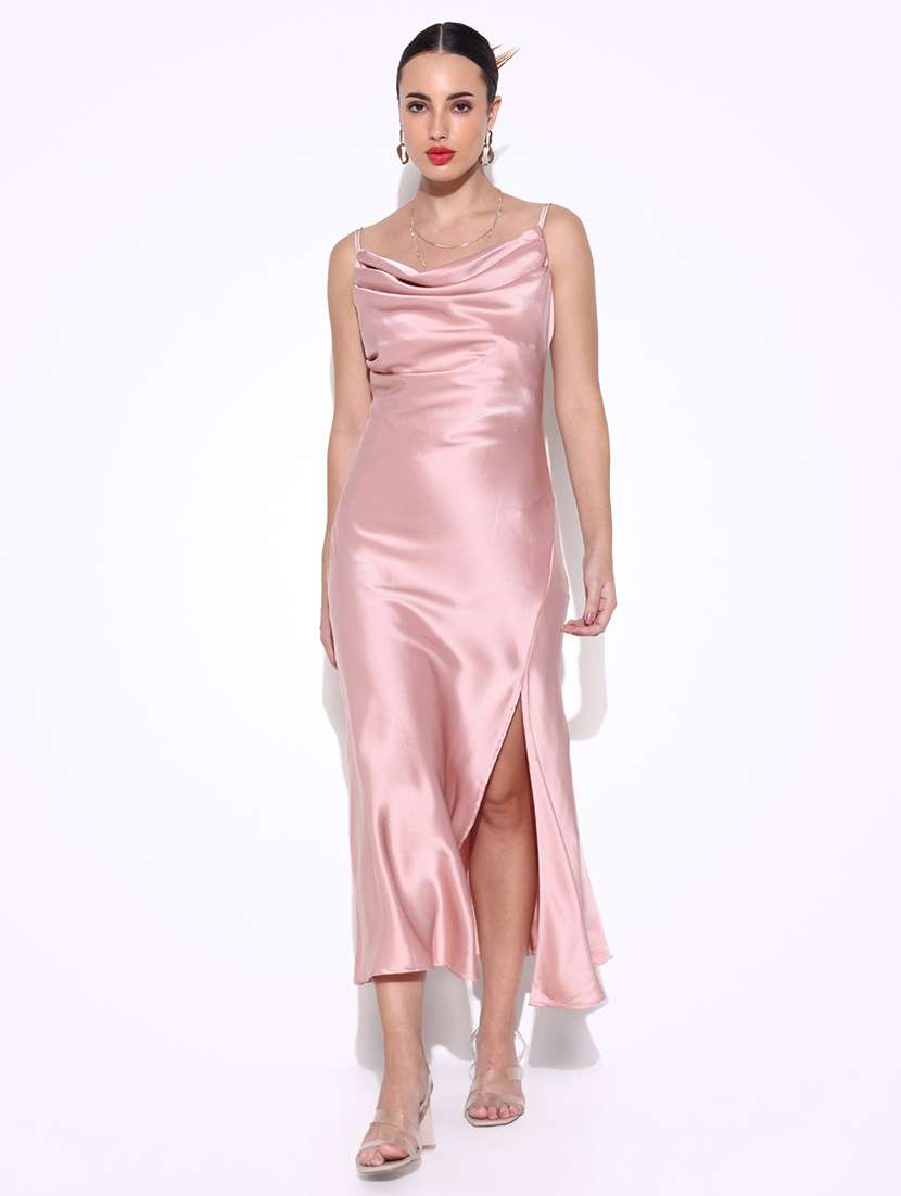 women solid cowl neck a-line dress with side slit - 21643138 - Very Small Image - 1