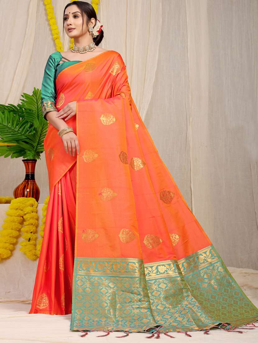 orange self design kanjivaram saree with blouse