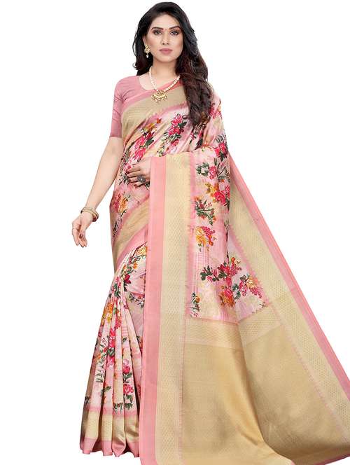 - » pink printed woven saree with blouse