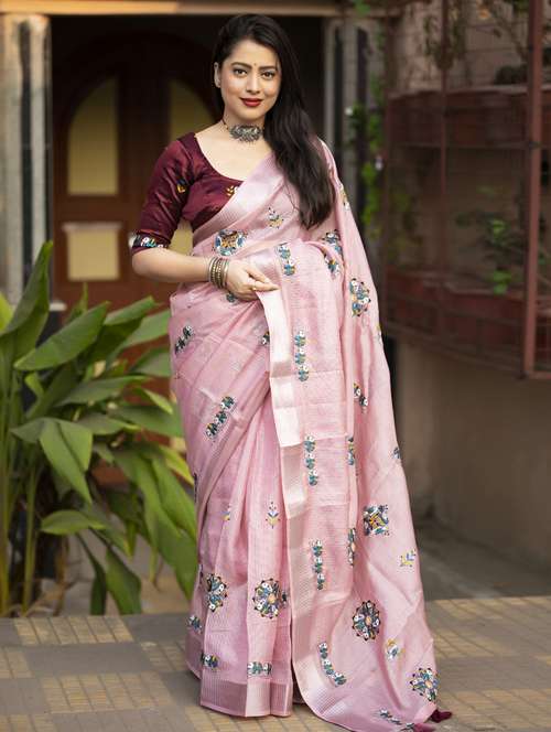 women pink embroidered saree