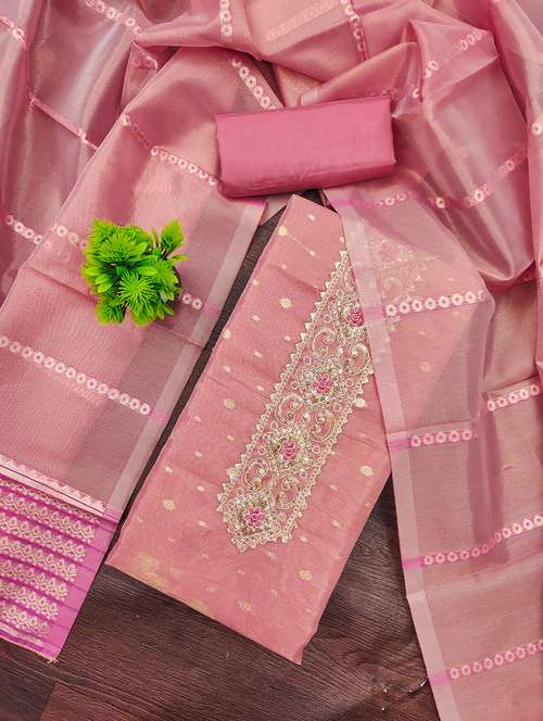 - Look ultra gorgeous in unstitched suits from Manvaa and grab these beautiful suits in pink colour.