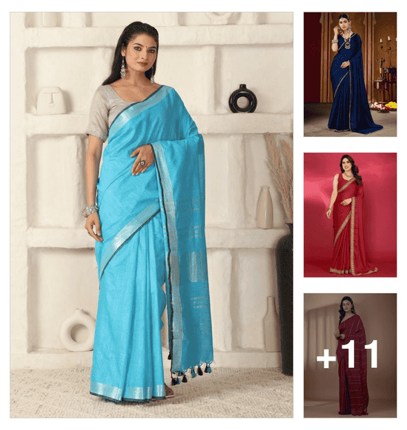 plain saree with golden border