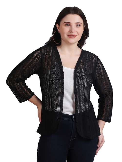 - Head over to LimeRoad and discover your favourite shrugs in lace materials that come in suitable patterns .