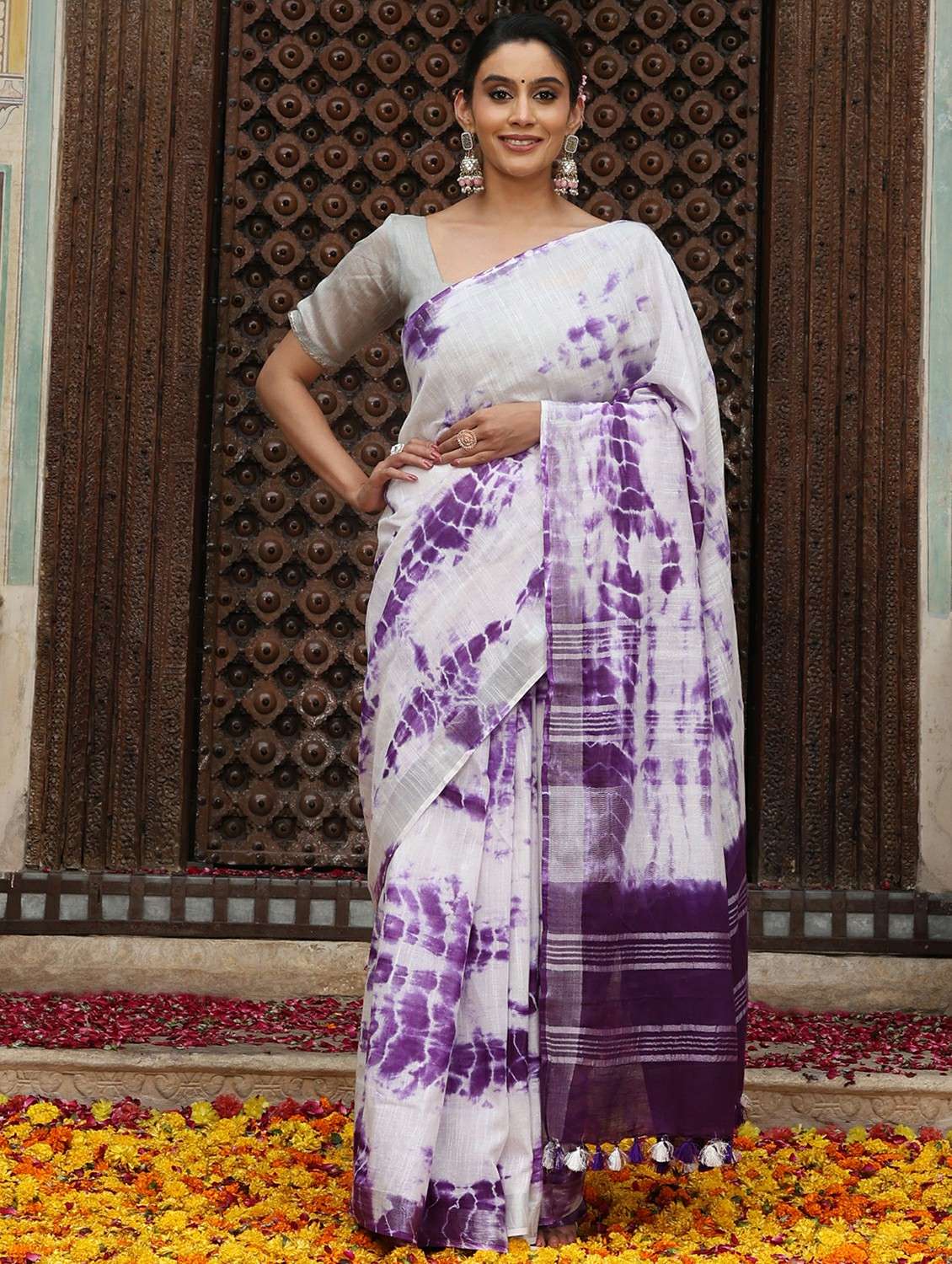The saree comes with an unstitched blouse piece