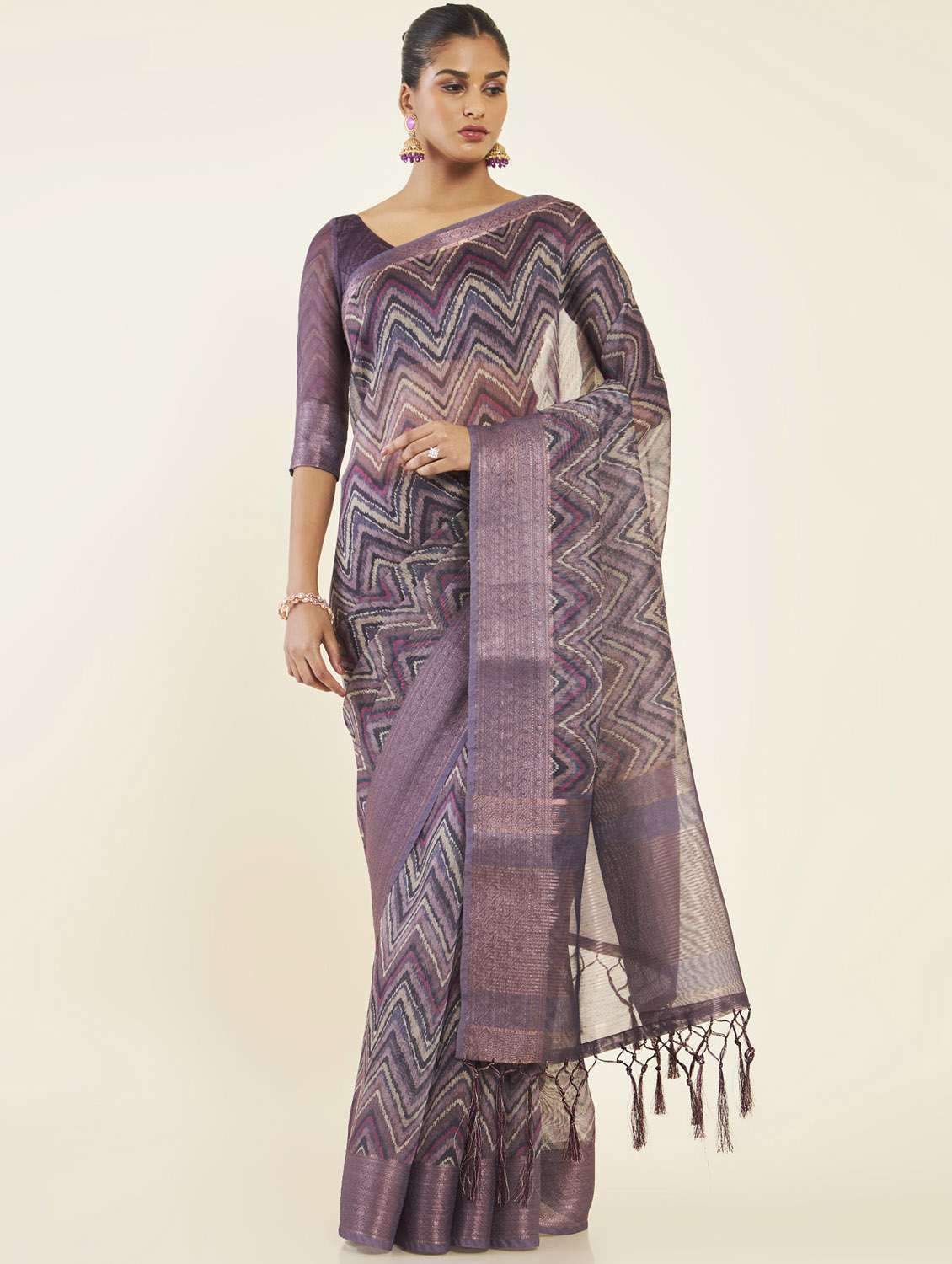 - » women's chevron purple colored saree with blouse