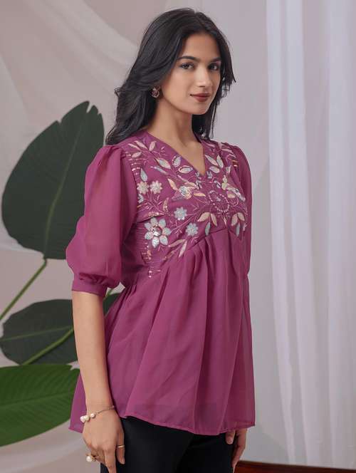 Upgrade Your Daily Wear Design With This Embroidered Georgette Tunic Top – Perfect For Women And Girls Who Love A Mix Of Elegance And Easy Fit