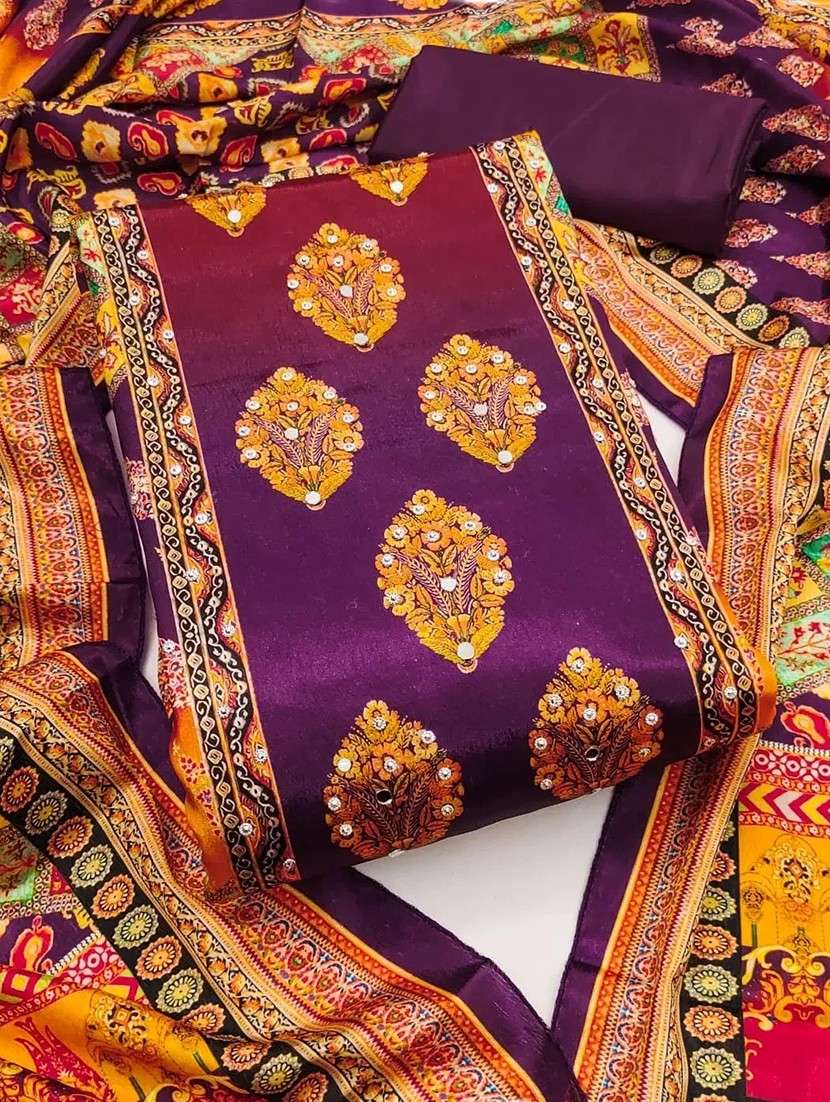 - Look ultra gorgeous in unstitched suits from Leeli Peeri Designer and grab these beautiful suits in purple colour.