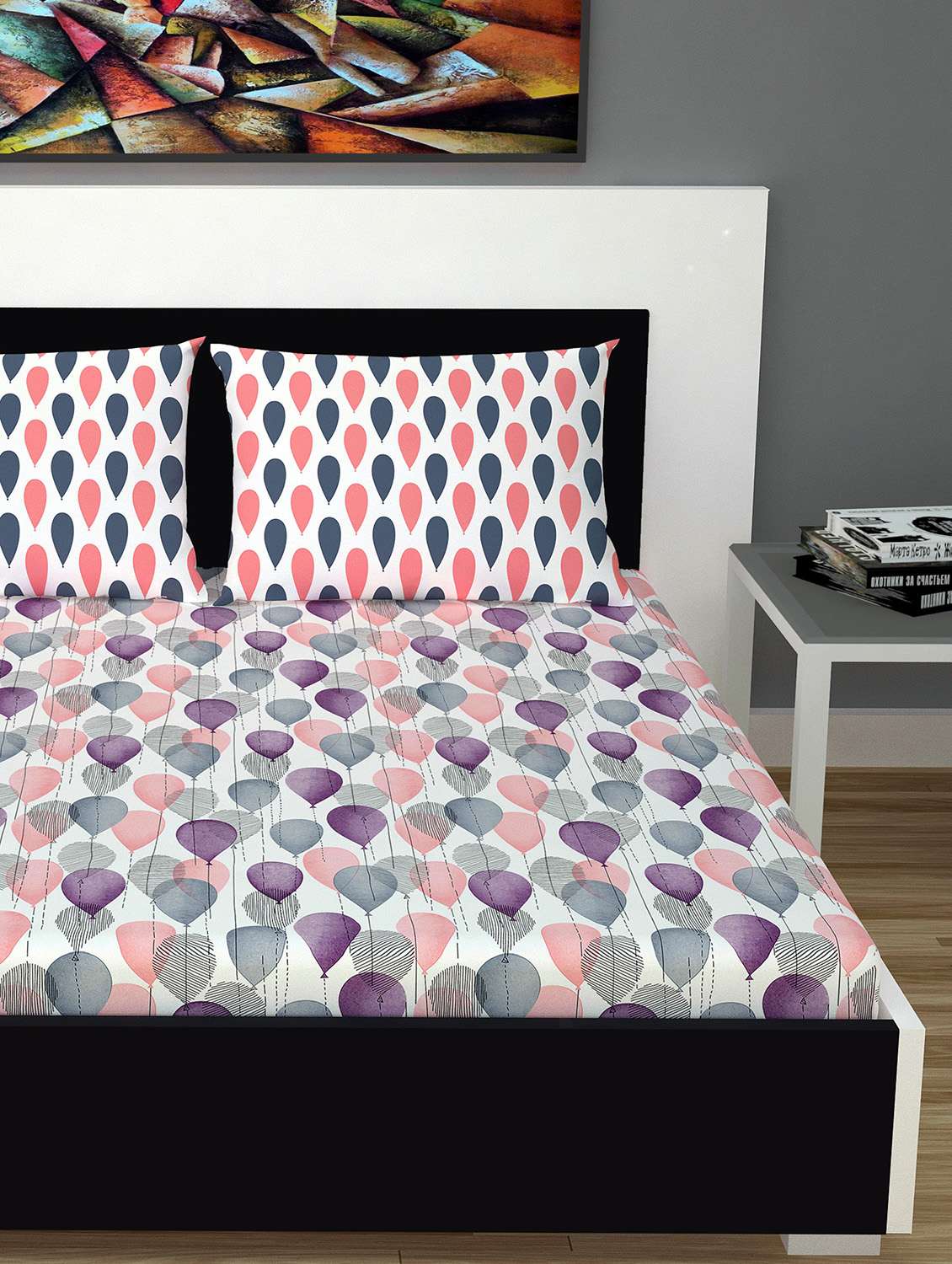 - » 100% cotton double bedsheet with 2 pillow covers