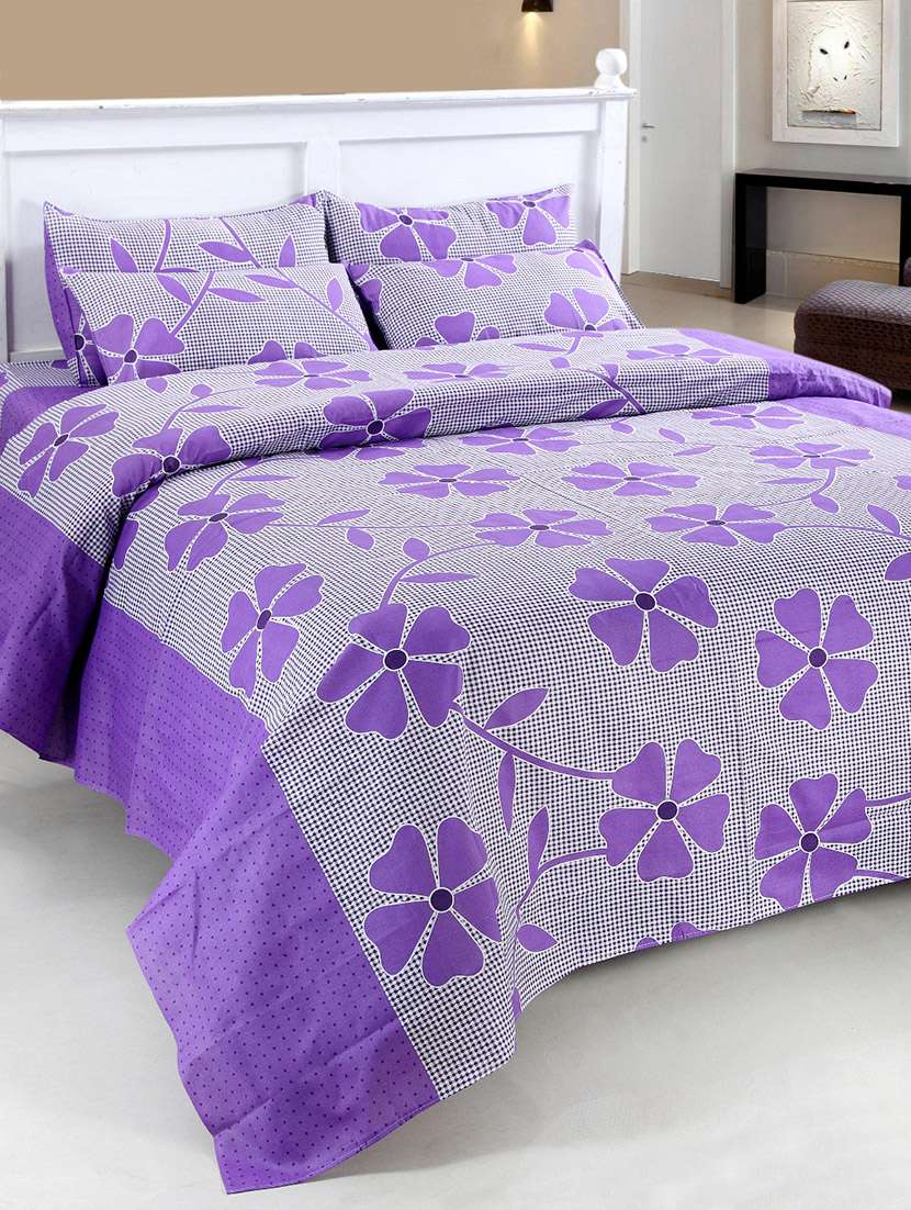 - » printed cotton double bed sheet with 2 pillow covers by shopaholic