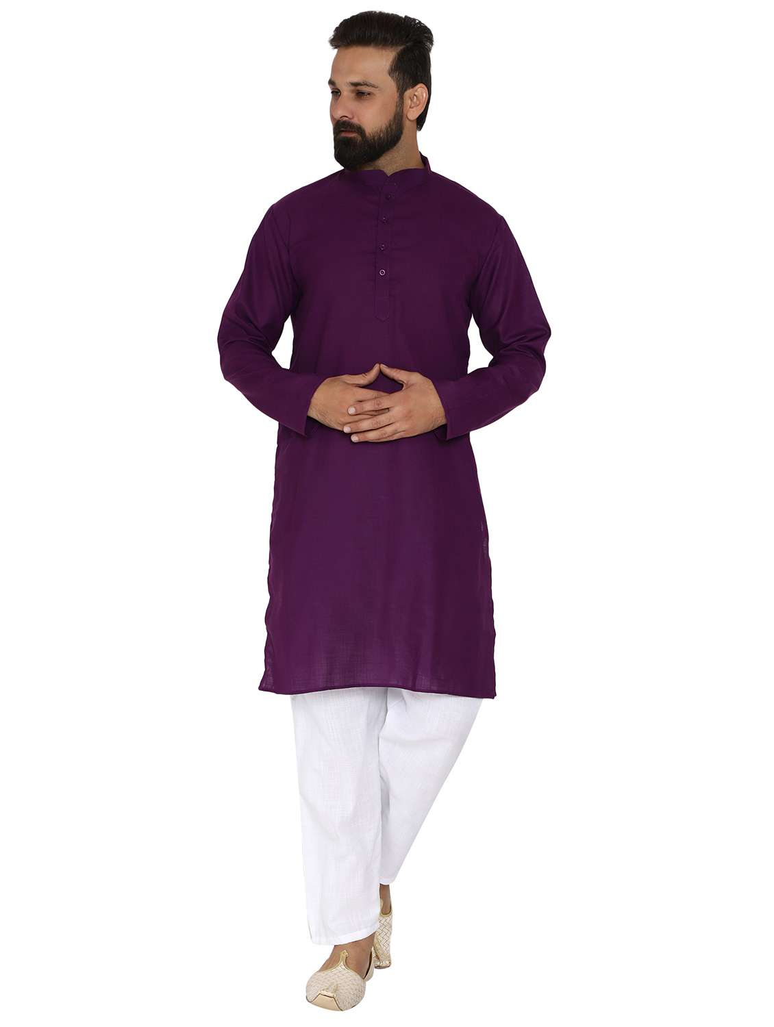 - » purple solid long kurta pyjama ethic wear set