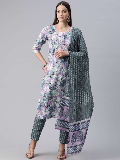 - Find gorgeous sets of ethnic wears in trending designs in lavender colors suitable for festive wear of occasions.