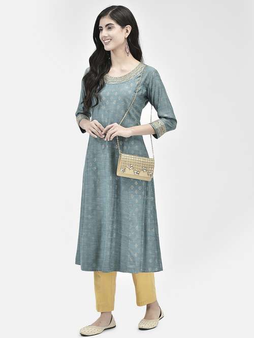 - Grab this beautiful kurta made up of cotton fabric featuring round neck designs.