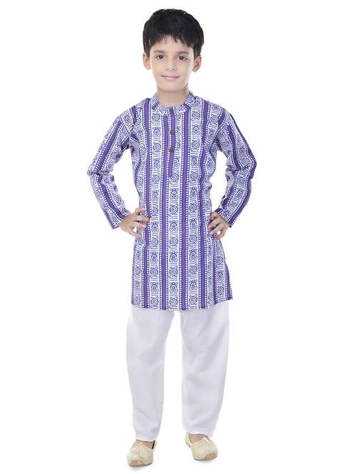 mandarin neck printed kurta with pajama set  - 17734392 - Very Small Image - 1