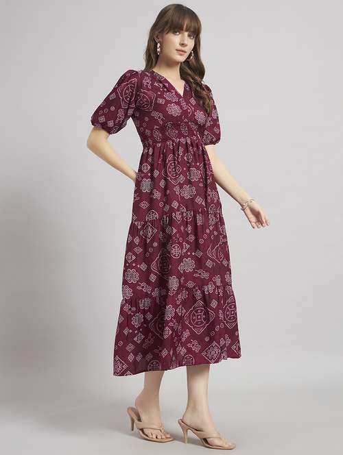 - » women bandhani print puff sleeve tiered dress