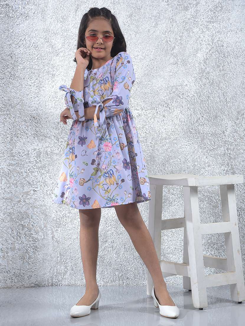 - » girls floral print round neck a-line dress