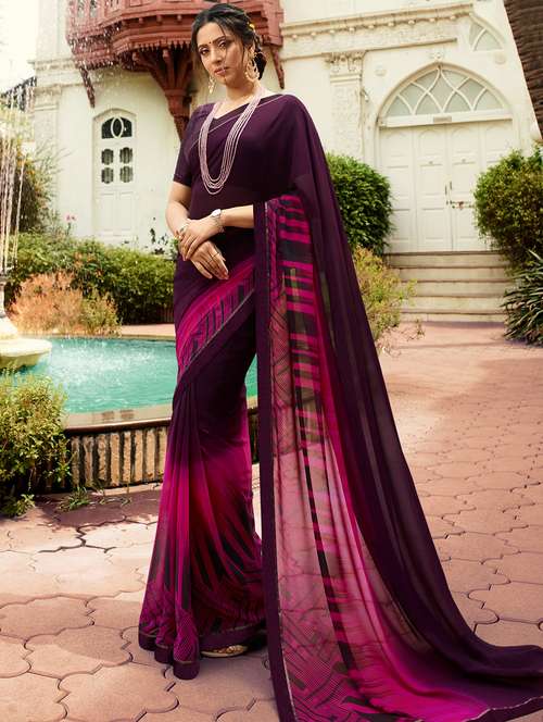 This Trendy Store's beautiful floral printed georgette saree is crafted with superior-quality fabric. The contrast Banarasi jecquard lace border of the saree give it an elegant touch. The saree perfectly adds charm to your appearance at all special events. Pair this saree with matching jewelry for a head-turning look.