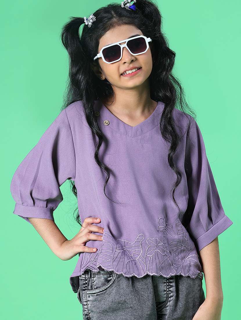 - » girls embroidered three quarter sleeve top