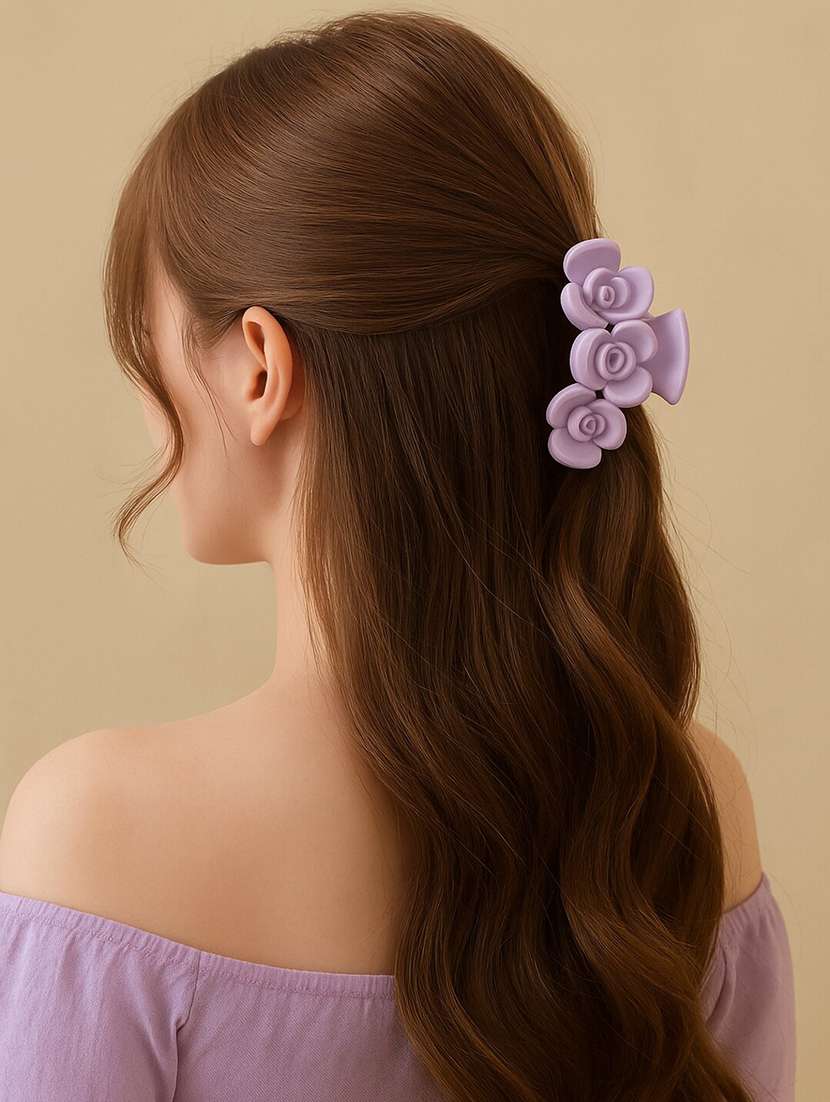 Elevate your hair game with this premium glossy rose design claw clip, specially crafted for women and girls who love chic and classy accessories. The pinteresty lavender color combined with its elegant rose structure adds a sophisticated flair to any hairstyle, making it the perfect accessory for casual outings, parties, or even daily wear. Made from durable, high-quality plastic with a sleek finish, this claw offers a strong grip that holds hair comfortably and securely throughout the day. Its unique floral design exudes a Korean aesthetic that's both cute and contemporary, ideal for creating quick yet stylish updos without compromising on comfort or beauty.