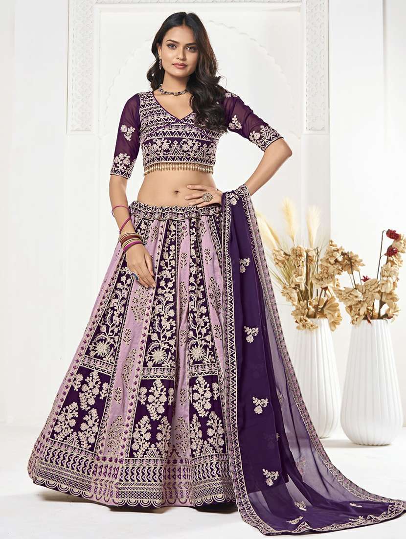 - Are you ready to adorn some alluring lehengas this season? Well, gear up to look gracious as LimeRoad brings to you the most magnificent collection of lehengas from WARTHY ENT and in purple colours.