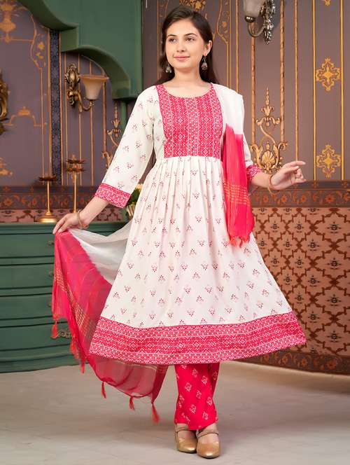 - » girls three quarter sleeve kurta pant with dupatta set