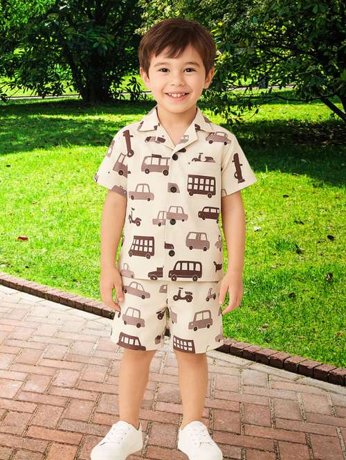 boys printed shirt and shorts co-ord set