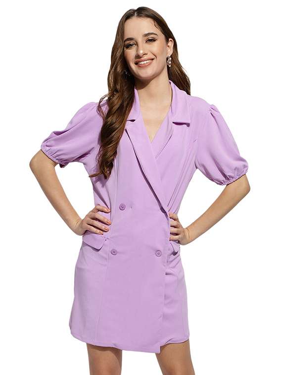 Fabric: Knit Color: Purple Dress Type: Coat Dress Pattern: Solid Dress Length: Mini Length. Neck Type: Collar Sleeve Length/Type: Half/Puff. Pair with your favorite high heels or sandals, enjoy your cool summer days!. Care Tips: Machine Wash the Dress. Avoid using chemicals to wash the apparel to preserve the nature of the fabric.Our dress is perfect for Weddings, Festivals, Party Wear, Daily Wear, cocktail, evening, prom, going out, baby shower, beach, holiday, official and special occasions. Pair it with your favorite heels and necklace and also for Special Occasions.