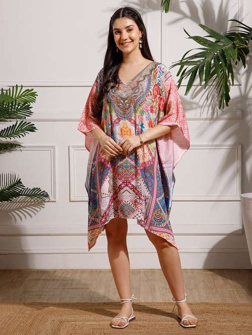 • Revamp your summer style with the latest trendy prints of kaftans available in various silhouettes and hues starting at ₹2249 prices.