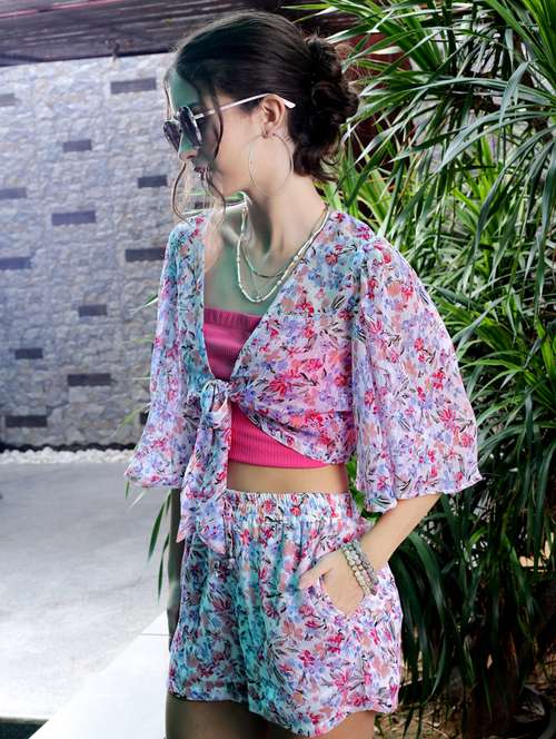Sera Purple Self Design Shrug Shorts Cord-Set