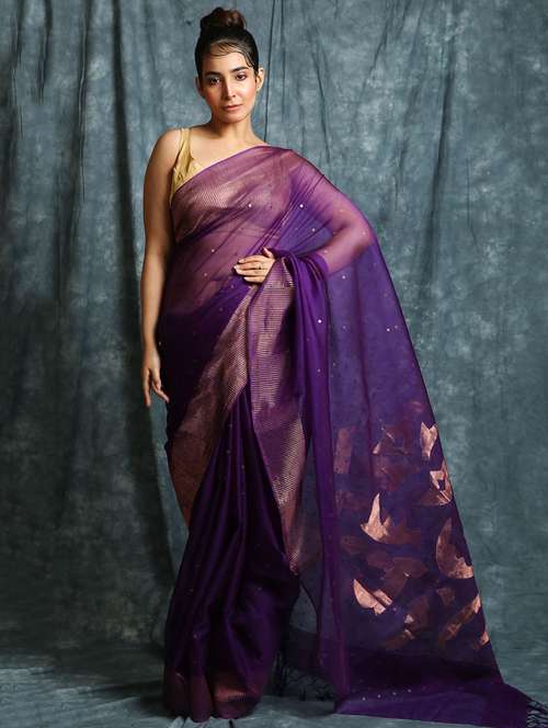 ethnic motifs woven saree with blouse - 17494858 - Very Small Image - 1