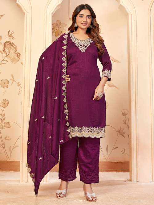 - Find gorgeous sets of ethnic wears in trending designs in purple colors suitable for festive wear of occasions.