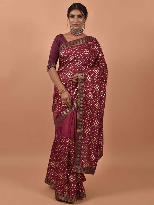 - » maroon silk woven printed saree with blouse