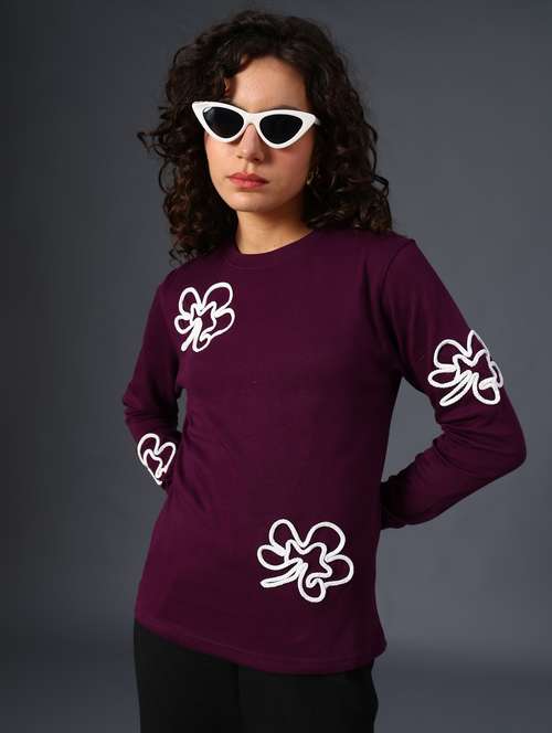 - Recreate your winter style with the all new frisky design options of sweatshirts available in purple shades and hues to brighten up the chilly days.