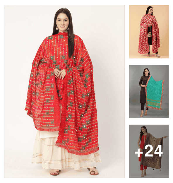 women embroidered three quarter sleeve kurta pant with dupatta set