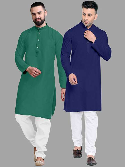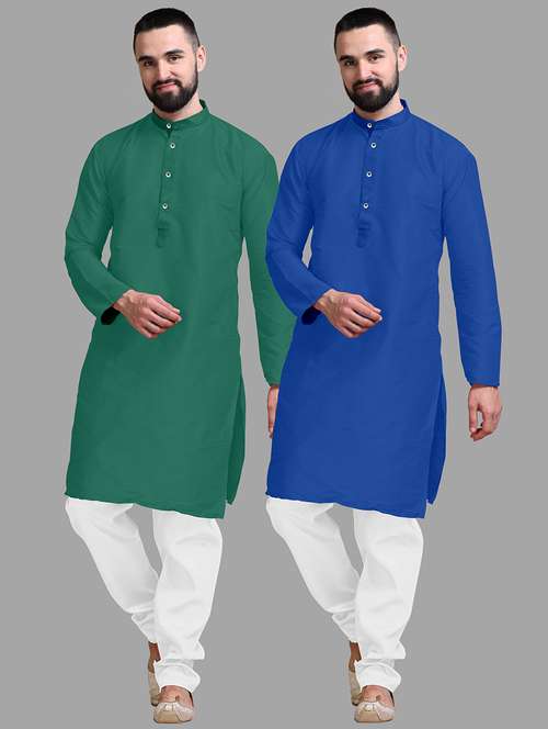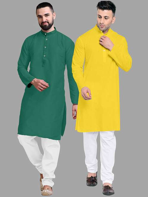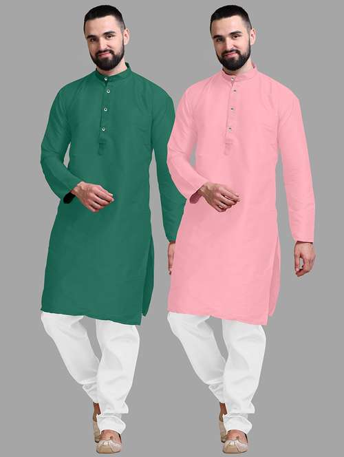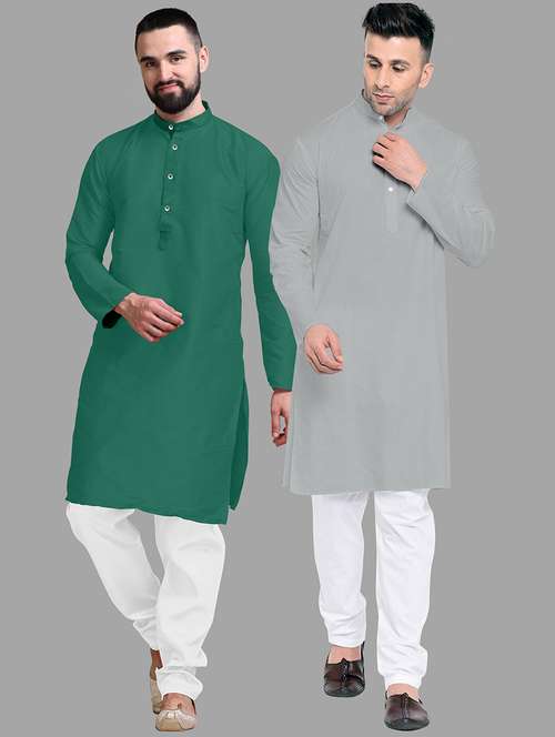 - » men pack of 2 solid mandarin neck kurta pyjama set