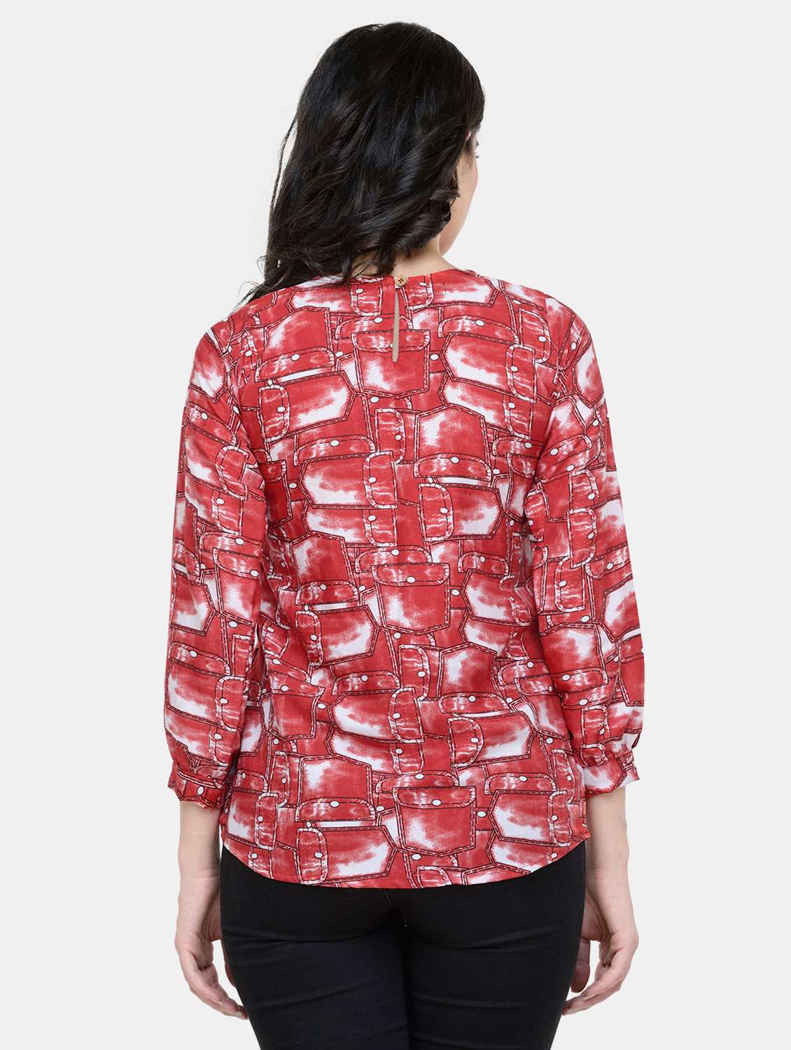 - Opt for this top made up of crepe material and get it in a varied neck design.