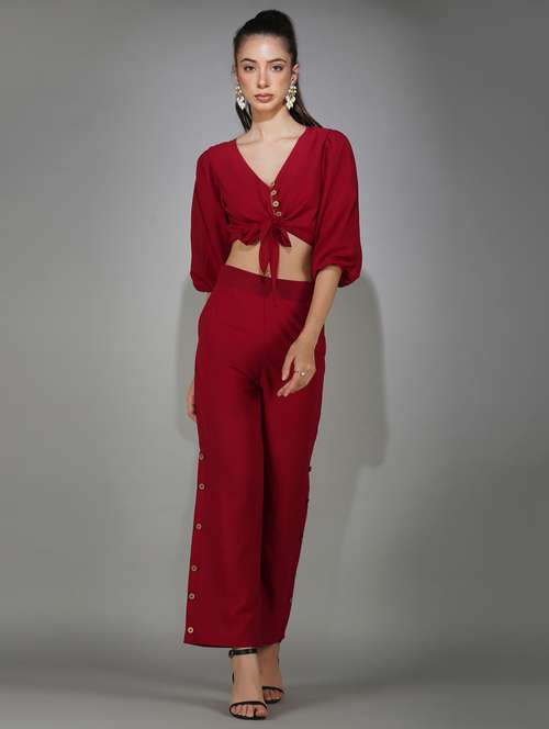 - » red solid top and trouser co-ord set