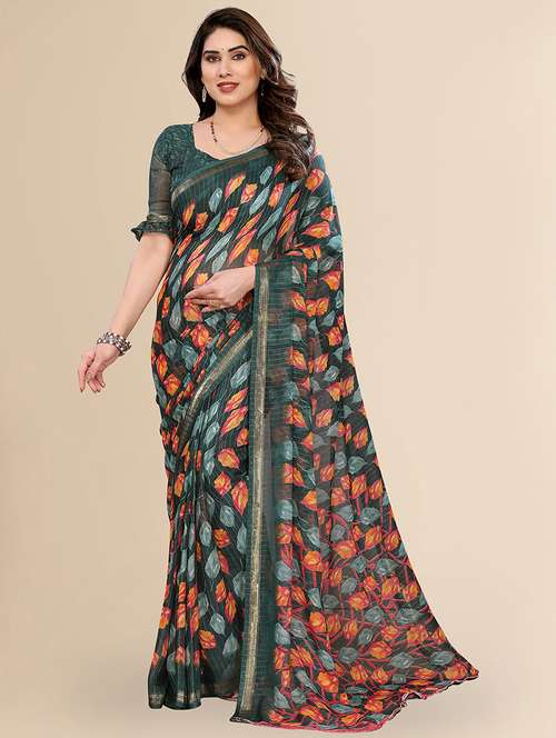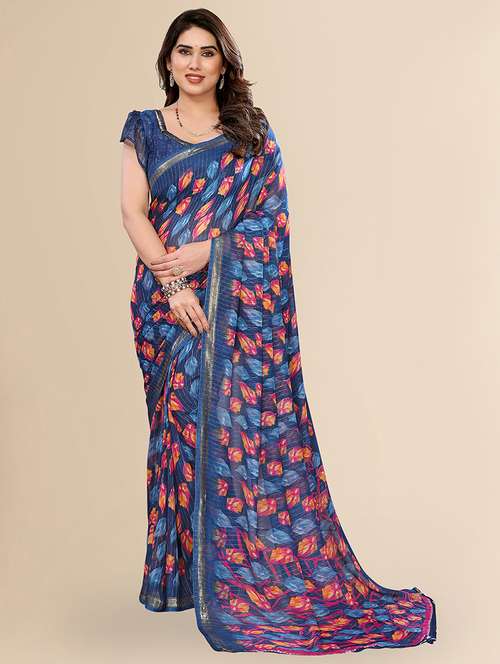 Made from lightweight georgette fabric for a soft and comfortable drape . Zari work embellished all over the saree for a rich and traditional look .Golden embellished border adds a regal and festive touch. Perfect for weddings, parties, and festive occasions. Comes with matching fabric blouse piece for a complete ethnic outfit