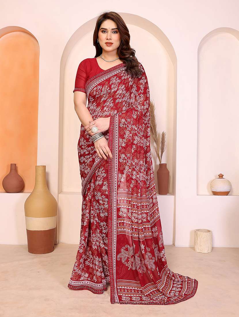 women printed casual wear saree with blouse