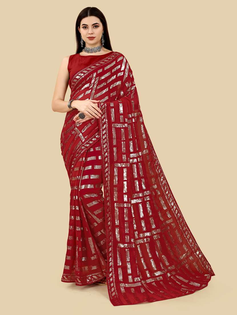 women red sequin work georgette saree with blouse