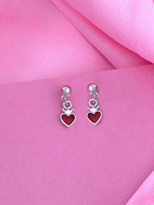 Gehena by Estele - Rhodium tone Red Enamel Crown Heart Drop Earrings