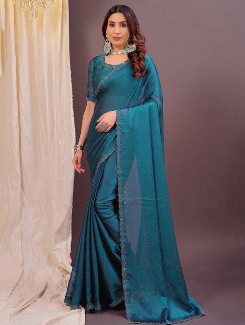 Embllished Stone Work scalloped pallu Desgine saree For Party And Festive Wear